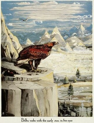 - "As Águias estão chegando! As Águias estão chegando! Os exércitos de Mordor olharam para cima, sem saber o que aquele sinal podia significar. Lá vinha Gwaihir, o Senhor dos Ventos, e Landroval, seu irmão, as maiores de todas as Águias do Norte, e os mais poderosos descendentes do velho Thorondor."